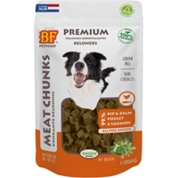 BF Petfood Meat Chunks Kip - ZalmDe BF Petfood Meat Chunks Kip/Zalm zijn heerlijke, gezonde licht verteerbare krokante premium beloning- of trainingssnacks voor jouw hond. De krokante beloners zijn ri...
