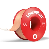 Leukoplast Hechtpleister 5 m x 1,25 cmLeukoplast Hechtpleister op de rode rol is een hechtpleister met hoge kleefkracht voor het vastzetten of fixeren van verbandmiddelen, tractieverbanden of hulpmiddelen. De oppervlakken van de spoel en klemring hebben een antimicrobieel materiaal dat het risico op kruisbesmetting vermindert. Leukoplast is bijzonder sterk en toepasbaar bij patiënten met een normale huid die intact is. De pleister is huidvriendelijk, waterafstotend en makkelijk in gebruik, ook zonder schaar. * Laat de huid ademen en helpt maceratie te voorkomen. * Sterke, duurzame verbandtape met hoge treksterkte, betrouwbaar onder zware belasting of voor actieve mensen. * Je kunt deze hechtpleister met de hand scheuren, waardoor hij gemakkelijk te gebruiken is. * Hoge initiële en permanente kleefkracht betekent dat je erop kunt vertrouwen dat het op zijn plaats blijft. * Hechtpleister die niet alleen sterk hecht, maar ook zacht is voor de normale, intacte huid. * Het oppervlak houdt vuil, water en puin weg van het gebied rond de wond. * Voor het vastzetten van verbandmiddelen, tractieverbanden of hulpmiddelen (Plein.nl)