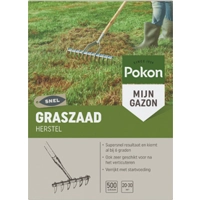 Pokon Graszaad HerstelPokon Graszaad Herstel is geschikt voor het herstel van je gazon, zowel van kale plekken als na het verticuteren. Met dit speciale SOS-graszaad wordt je gazon weer supersnel egaal groen. Het graszaad kiemt al na 1 week, zelfs bij een bodemtemperatuur van 6C. Pokon Graszaad Herstel is ideaal als snelle oplossing, ook in de herfst- en wintermaanden. Voor een optimale ontkieming is het van belang dat de grond niet te koud is (+6C.) en dat de buitentemperatuur hoger is dag 15C (max 25C). Zaai in een vochtige grond en bij windstil weer. Wanneer er geen regen is gevallen, besproei dan eerst de grond. Zaai het graszaad gelijkmatig en niet te dicht op elkaar, dit belemmert de ontwikkeling. Kiemduur is 1 tot 2 weken, afhankelijk van lucht- en bodemtemperatuur en hoeveelheid vocht. Zorg ervoor dat de grond na het zaaien de eerste 2 tot 4 weken vochtig blijft door voorzichtig en gelijkmatig te sproeien. Droogt de bovenlaag uit, dan mislukt de kieming of sterven de kleine grasplantjes af. * Voor een egaal groen gazon * Ook te gebruiken in de herfst- en wintermaanden * Ideaal als snelle oplossing (Plein.nl)