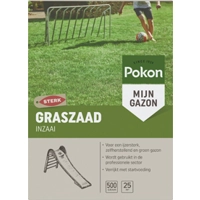 Pokon Graszaad InzaaiPokon Graszaad Inzaai is geschikt voor het inzaaien van een nieuw gazon. Het graszaad is gecoat voor optimale kieming en uniek vanwege het zelfherstellende vermogen; het creëert (horizontale) uitlopers door middel van RPR-technologie. In plaats van losse grasplantjes, zoals traditioneel gras, heeft ieder grasplantje van RPR-technologie een link naar andere grasplantjes. Hierdoor ontstaat een ijzersterk gazon, RPR-technologie wordt door zijn betredingstolerantie o.a. gebruikt in de professionele voetbalsector. Voor een optimale ontkieming is het van belang dat de grond niet te koud is en dat de buitentemperatuur hoger is dan 15C (max. 25C). Zaai in een vochtige grond en bij windstil weer. Wanneer er geen regen is gevallen, besproei dan eerst de grond. Zaai het graszaad gelijkmatig en niet te dicht op elkaar, dit belemmert de ontwikkeling. Kiemduur is 2 tot 3 weken, afhankelijk van lucht- en bodemtemperatuur en hoeveelheid vocht. Zorg ervoor dat de grond na het zaaien de eerste 2 tot 4 weken vochtig blijft door voorzichtig en gelijkmatig te sproeien. Droogtde bovenlaag uit, dan mislukt de kieming of sterven de kleine grasplantjes af. Maai het gazon voor het eerst als het gras circa 8 tot 10 cm lang is met een hoog afgestelde, scherpe maaimachine. * Voor het inzaaien van een nieuw gazon * Voor een ijzersterk gazon * Kiemduur van 2 tot 3 weken (Plein.nl)