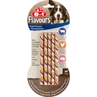 8in1 Triple Flavour Sticks De 8in1 Triple Flavour gedraaide sticks zijn lekkere kauwsnacks gemaakt van varkens- en runderhuid, omwikkeld met kipfilet om jouw hond bezig te houden. Langdurig kauwplezie...