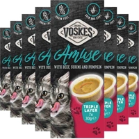 8x Voskes Kattensnack Triple Layer Rund-Sumiri-Pompoen 7x30 gr