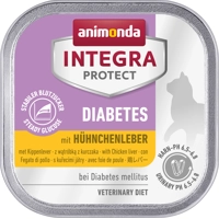 Animonda Integra Protect Cat Diabetes Kippenlever is een natvoeding ter ondersteuning van katten met diabetes mellitus. Voor katten met diabetes is het van belang om de glucose spiegel zo constant mogelijk te houden. Dit kan onder andere door te ondersteunen met een speciaal aangepaste dieetvoeding, zoals de Integra Protect Diabetes. (Medpets.nl)