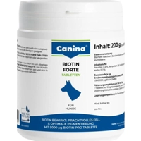 De Canina Biotine Forte Tabletten ondersteunen een mooie vacht, gezonde huid en optimale pigmentatie van de vacht. De tabletten voor honden bevatten biotine en vitamine B. (Medpets.nl)