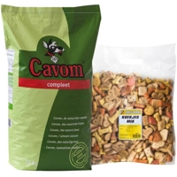Cavom Voer met Voskes Koekjes PakketCavom is een volledige voeding voor volwassen honden op basis van rundvlees. De brok is geperst en de granen die gebruikt worden zijn ontsloten hierdoor is Cavom zeer licht verteerbaar. Cavom wordt vaak gevoerd aan actieve, grotere honden. Die actieve, grote honden verdienen natuurlijk ook een lekkere snack! De Voskes Koekjesmix zit vol met lekkere hondenkoekjes, het ideale tussendoortje gemaakt met de beste ingrediënten. * Zeer licht verteerbaar * Ideaal combinatiepakket * Ook geschikt voor actieve honden (Petgamma.com)