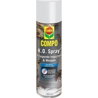 Compo KO spray - Sterk tegen diverse insecten Met Compo KO Spray behandeld u de naden, kieren en andere schuilplaatsen van kruipende insecten. De spray heeft een nawerking van 6 weken wat zorgt voor een optimale bestrijding. Ook kan deze spray gebruikt worden om wespen te bestrijden. Door de handige spuitlans kan u de spray gemakkelijk in de invliegopening van het wespennest spuiten. Houd de spuitbus op ongeveer 30 cm en bespuit met een gelijkmatige beweging lichtjes de te behandelen plaatsen. Als de insecten eenmaal over de behandelde plaatsen lopen gaan ze snel dood. (Ongediertewinkel.nl)