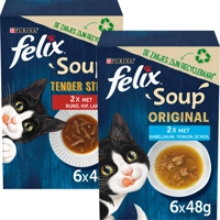 Felix Soup Original zit boordevol hoogwaardige ingrediënten en bevat geen kunstmatige kleurstoffen, smaakstoffen of conserveermiddelen. Jouw kat verdient alleen het beste! (Medpets.nl)