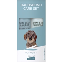 Met de Greenfields Dachshund Care Set ziet jouw hond er fantastisch uit! Deze set bestaat uit een shampoo voor honden met een ruwe vacht en een droogshampoo voor onderweg. (Medpets.nl)