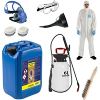 Houtworm bestrijden - Een compleet pakket met alles er in Zelf houtworm bestrijden is erg eenvoudig en met dit pakket tegen houtworm kunt u meteen beginnen met een goede bestrijding van houtworm en boktor. Hieronder ziet u wat er allemaal in het pakket zit: Perfacs houtwormbestrijdingsmiddel, 20 liter () Perfacs is een kant-en-klaar houtwormbestrijdingsmiddel. Het houtwormmiddel voorkomt heraantasting gedurende 10 jaar en bestrijdt alle actieve houtworm. Dit middel wordt ook toegepast door professionele ongediertebestrijders. Masker inclusief filters () Dräger halfgelaatsmasker met 2 A2/P3 filters die zorgen voor voldoende adembescherming bij het bestrijden van houtworm. Van de filters kunt u 8 uur gebruik maken. Drukspuit 6 liter () Door het houtwormbestrijdingsmiddel aan te brengen met deze drukspuit wordt het middel optimaal verdeeld over het hout. Microgard Overall () Dit Microgard chemisch bestendige overall zorgt voor voldoende bescherming als u houtworm gaat bestrijden. Chemisch bestendige handschoenen () De handschoenen zijn optimaal bij de bestrijding van houtworm en boktor omdat ze bestand zijn tegen chemicaliën. Veiligheidsbril () De veiligheidsbril zorgt ervoor dat het houtwormbestrijdingsmiddel niet in uw ogen terecht komt. Trechter () De Trechter is voorzien van een handvat en een flexibele tuit zodat de vloeistof gemakkelijk in de drukspuit kunt gieten. Staalborstel () Met de staalborstel kunt u los zittende houtdelen door houtworm weg krabben. Tevens wordt bij dit pakket een handige gebruiksaanwijzing geleverd zodat u weet hoe u te werk moet gaan. (Ongediertewinkel.nl)