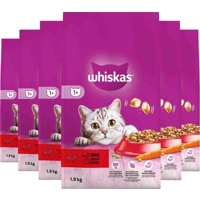 6x Whiskas 1+ Adult Katten Droogvoer Rund 1,9 kg