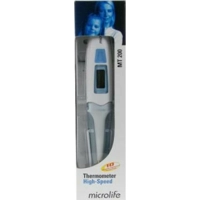 Microlife Thermometer pen 10 seconden MT200 Microlife Thermometer pen geeft in 10 seconden je lichaamstemperatuur aan. Bij koorts krijg je een koortsalarm. De thermometer is voorzien van een flexibele tip, groot LCD display met verlichting, is waterdicht en toont altijd de laatste meting. De eigenschappen vanMicrolife Thermometer pen 10 seconden MT200 op een rijtje: * 10 seconden temperatuurmeting * Flexibele Tip * Gold Tip, anti-allergeen * Groot LCD display met verlichting * Waterdicht * Koortsalarm * Geheugen laatste meting * Automatic switch-off&selftest * Low battery indicatie * Levenslange garantie (Plein.nl)