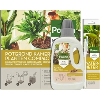 Pokon Kamerplanten Bio/turfvrij PakketPokon WatermeterGeschikt voor alle soorten kamerplanten. De Pokon Watermeter kan gebruikt worden in diverse bodems zoals potgrond, boomschors en hydrocultuur. Laat de Pokon Watermeter in de pot staan. Geen batterijen nodig. Het filter in de watermeter is gemaakt van natuurlijke vezels, deze moet vervangen worden wanneer deze na watergeven niet meer blauw kleurt. Het filter gaat gemiddeld 3-6 maanden mee. * Geschikt voor alle soorten kamerplanten * Geen batterijen nodig * Gaat gemiddeld 3-6 maanden meePokon Bio Kamerplanten Voeding 500 mlStimuleer jouw kamerplanten tot de vorming van diepgroen blad en het geven van uitbundige bloei. Pokon Bio Kamerplanten Voeding bevat alle essentiële voedingsstoffen die jouw kamerplanten nodig hebben om sterk en gezond te blijven. De voeding is 100% natuurlijk en bevat een natuurlijke mix van sporenelementen. * 100% Natuurlijke voeding * Stimuleert de vorming van diepgroene bladeren * Stimuleert uitbundige bloei Pokon Kokos PotgrondKamerplanten CompactNa het toevoegen van water zet het blok zich uit en verandert het in 10L gebruiksklare potgrond. Pokon Potgrond Kamerplanten Compact is geschikt voor alle kamerplanten. De grond bestaat uit gecomposteerde kokosvezel, afkomstig van de zachte kokosbast. De kokos zorgt voor een luchtige open structuur van de grond, waardoor de wortels snel kunnen groeien. Je hoeft bovendien minder vaak water te geven doordat kokosvezels een zeer hoog waterhoudend vermogen hebben. Er zit voldoende voeding in voor ca. 6 maanden. * Geschikt voor alle kamerplanten * Bestaat uit gecomposteerde kokosvezel * Luchtige structuur * Zeer hoog waterhoudend vermogen (Plein.nl)