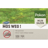 Pokon Mos Weg! - GazonmeststofHeb je last van mos in je gazon? Pokon Mos Weg! is een mosbestrijder inclusief gazonmest. Het verwijdert mos in je gazon op een snelle en effectieve manier zonder het gazon te beschadigen. Door de gazonmest voedt het je gazon direct. De gazonmest in Pokon Mos Weg! bevat essentiële voedingsstoffen die er voor zorgen dat het gazon beter bestand is tegen mos. Dosering: 35 gram voor 1 m2Timing: Pokon Mos Weg! gebruik je van maart t/m mei en van september t/m december. Let op dat je dit product niet toepast in de zomer toe. Voor een effectieve behandeling is het belangrijk dat de grond niet bevroren is, er geen zware regen wordt verwacht en de buitentemperatuur niet te hoog is.Tips: Bemest het gazon 3 keer per jaar met gazonmest om je gras gezond en sterk te houden.Door je gazon niet te kort te maaien (houd een minimaal maailengte van 4 cm aan) krijgen mos en onkruid minder kans. (Welkoop NL)