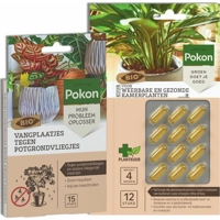Pokon Problemen Voorkomen PakketPokon Biologische Kuur Voor Weerbare en Gezonde Planten 12st CapsulesPokon Bio Kuur voor Weerbare en Gezonde Kamerplanten Capsules is een traditioneel kruidenextract ter verhoging van de weerbaarheid. De kruiden ondersteunen het natuurlijk herstellend vermogen, werkend verzorgend, voedend en plantversterkend. Een gezonde en weerbare plant is minder vatbaar voor invloeden van buitenaf, zoals hitte, droogte en kou. Het middel wordt opgenomen door de wortel van de planten, die de aanmaak van secundaire wortels stimuleert en daardoor een sterker afweersysteem ontwikkelt. Na behandeling kunnen de vruchten zonder problemen gegeten worden. Was je groente wel even voordat je ze gaat eten. Pokon Bio Kuur voor Weerbare en Gezonde Kamerplanten Capsules kan gedurende de hele groeiperiode gebruikt worden. Herhaal de behandeling iedere 4 weken. Mocht het nodig zijn kan de behandeling sneller herhaald worden. Let op: de kruiden zullen een geur afgeven. * Pokon Bio Kuur voor Weerbare en Gezonde Kamerplanten Capsules verhoogt de weerbaarheid van de planten door traditionele kruidenextracten. * De kruiden ondersteunen het natuurlijk herstellend vermogen van de planten en versterken ze, waardoor ze beter bestand zijn tegen externe invloeden. * De capsules worden opgenomen door de wortels van de planten, stimuleren de aanmaak van secundaire wortels en bevorderen zo de ontwikkeling van een sterker afweersysteem.Pokon Vangplaatjes tegen Potgrondvliegjes BiologischVliegende insecten voelen zich aangetrokken tot de gele kleur van de vangplaatjes. Pokon Bio Vangplaatjes Tegen Potgrondvliegjes zijn voorzien van een geurloze speciale lijm die insecten na aanraking gevangen houden. * Helpt potgrondvliegjes te bestrijden * Bevat 5x vangplaatje in tulpvorm, 10x klein vangplaatje en 5x metalen stekertje. * Geurloos (Plein.nl)