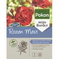 Pokon Rozen Mest3-in-1 werking: voeding, bodemverbeteraar en plantversterker in 1 korrel. Pokon Rozen Mest is geschikt voor alle soorten rozen, zoals stamrozen, klimrozen en trosrozen. Deze organische mest, verrijkt met in de natuur voorkomende mineralen zoals zeoliet en algen, voedt de plant en verbetert de grond. Een goed bemeste en gezonde bodem is een belangrijke voorwaarde voor uitbundige bloei en gezonde planten. Door de extra toevoeging van Magnesium (Mg0) en IJzer (Fe) krijgen je rozen een intense kleur. De voeding en Pokon Plantenversterker zorgen voor sterke planten met een goede weerstand tegen ziektes, plagen en vorst. Pokon Rozen Mest geeft tot wel 120 dagen voeding. Pokon Rozen Mest kan in de maanden maart t/m augustus gebruikt worden. Voor het beste resultaat voed je je planten 2 keer per jaar, in het vroege voorjaar en in de zomer. * Pokon Rozen Mest biedt een 3-in-1 werking: voeding, bodemverbetering en plantversterking * Geschikt voor alle soorten rozen, inclusief stamrozen, klimrozen en trosrozen * Verrijkt met natuurlijke mineralen en organische meststoffen voor gezonde rozen met intense bloemkleuren, en biedt langdurige voeding tot wel 120 dagen (Plein.nl)