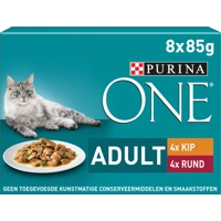 Purina ONE Kattenvoer Nat Fijne Malse Reepjes in Saus Kip - RundPurina ONE Kattenvoer Nat Fijne Malse Reepjes in Saus Kip - Rund is een volledige en gebalanceerd voeding, speciaal ontwikkeld door dierenartsen en voedingsdeskundigen om doelgerichte, kwalitatief hoogwaardige voeding te combineren met een heerlijk smaak.Deze complete en uitgebalanceerde recepten combineren malse stukjes met kip gesneden in minifilets en groenten in een heerlijke gelei. Zo kun je er zeker van zijn dat je jouw kat de voeding biedt die ze nodig heeft met de smaak waar ze van houdt om gezond te blijven, zowel vandaag als morgen. Geen toegevoegde kunstmatige kleurstoffen, conserveermiddelen en smaakstoffen. Alle benodigde vitaminen en mineralen om de vitaliteit van jouw kat te ondersteunen. * Helpt een sterk natuurlijk afweersysteem te ondersteunen dankzij antioxidanten, zoals vitamine E * Helpt een gezond urinewegsysteem te ondersteunen door de concentratie mineralen, die tot nierstenen kunnen leiden, te helpen verminderen * Met kwalitatief hoogwaardige kip voor eiwitten en een heerlijke smaak * Met kwalitatief hoogwaardig rund voor eiwitten en een heerlijke smaak * Met vezels, waarvan bewezen is dat ze een gezond spijsverteringssysteem bevorderen * Alle nodige vitaminen en mineralen om de vitaliteit van uw kat te ondersteunen (Plein.nl)