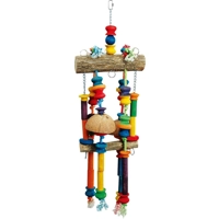 Quapas! Papegaaienspeelhanger Coco Giant – Hout en touw speelgoed- Afmeting: 26 x 20 x 84 cm.Deze stoere speelhanger heeft een lengte van 84cm. en is gemaakt van touw en bont gekleurde houten blokken. Door de papegaaienhanger te kantelen en hem aan de vier bevestigingsogen op te hangen maak je er een waar speeleiland van. Het ultieme speelgoed voor elke papegaai of kaketoe.De extra bevestigingsogen, aan boven en onderzijde kun je ook gebruiken om de speelhanger verder uit te bouwen met andere papegaaien speeltjes. (De Huisdierensuper)