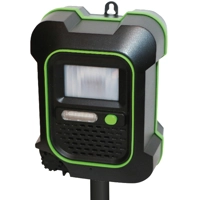 Ultrasone dierenverjager - Verjaagt diverse dieren Met deze ultrasone dierenverjager zorgt u dat u geen overlast meer heeft van diverse dieren. De verjager is voorzien van een infrarood sensor zodat het apparaat in werking gaat zodra er beweging is. De sensor heeft een detectiehoek van 90° over een afstand van circa 16 meter. Zodra er beweging gedetecteerd wordt zendt het apparaat een ultrasoon geluid uit wat de dieren meteen afschrikt. Ook kan u er voor kiezen om als extra het flitslicht te activeren, dit verhoogd de werking van het apparaat aanzienlijk. De verjageris geschikt om buiten te gebruiken en is bestand tegen regen, sneeuw enz. Het apparaat werkt op 4 D batterijen () maar u kan er ook voor kiezen om het apparaat aan te sluiten op een adapter (). Het apparaat kan ingesteld worden op 7 regelbare frequenties zodat het zo ingesteld kan worden tegen het dier waar u last van heeft. (Ongediertewinkel.nl)