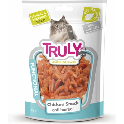 Truly Cat Snacks Anti-Haarbal met Kip 50 grAnti-Haarbal met Kip van Truly Cat is een smakelijke snack en helpt bij regelmatig gebruik de vorming van haarballen bij katten te voorkomen. Gebitsverzorgend en zorg altijd voor voldoende vers water! * Gebitsverzorgend * Zorg altijd voor voldoende vers water * Helpt bij regelmatig gebruik de vorming van haarballen bij katten te voorkomen (Plein.nl)