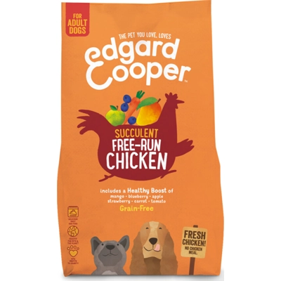 Edgard&Cooper Hondenvoer Scharrelkip met mango, blauwe bes, appel en wortelLekkere brokken gemaakt van 100% vers vlees. Vlees is het belangrijkste ingrediënt voor de voeding van je hond. Vers vlees zit namelijk boordevol proteïnes of eiwitten. En die zijn superbelangrijk voor een gezond leven. Zo draagt scharrelkip bij aan een gezond immuunsysteem en is laag in calorieën. Daarnaast zitten blauwe bessen vol met natuurlijke antioxidanten, wortel bevat veel vitamine A en mango zit vol met vezels en belangrijke vitaminen. De Edgard&Cooper brokjes zijn geschikt voor alle honden, groot of klein, dik of dun, jong en oud. * 100% Natuurlijk * Vrij van vleesmeel, hoogbewerkt dierlijk afval en karkassen * Vrij van Artificiële kleur-, geur-, smaakstoffen * Vrij van granen (Petgamma.com)