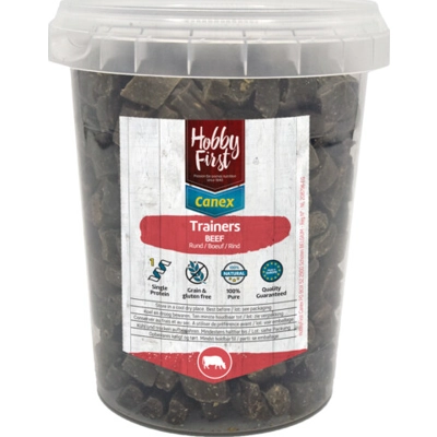 Hobby First Canex 100% Pure Trainers BeefHobbyFirst Canex pure trainers zijn een aanvullend voer voor alle honden van alle rassen. Het idealeén gezonde tussendoortje. Beschikbaar in 6 verschillende smaken en 2 formaten. De snacks zijn graan- en glutenvrij en biedt dus een hypoallergene oplossing. Daarnaast zijn de snacks 100% natuurlijk zonder toegevoegde kleur- en smaakstoffen. * In de smaak beef * Geschikt voor alle honden en rassen * Graan- en glutenvrij * zonder toegevoegde kleur- en smaakstoffen (Plein.nl)