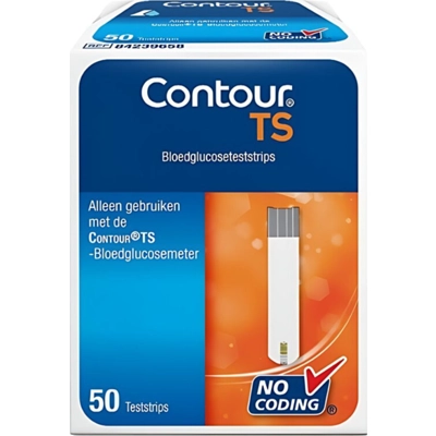 Bayer Contour TS Teststrips 50 stripsDe (Bayer) Contour TS strip is een zeer nauwkeurige en zelfcoderende glucose teststrip voor het meten van de hoeveelheid glucose in het bloed. Je kunt de Contour TS strips alleen gebruiken met de Contour TS bloedglucosemeter. De glucoseteststrip heeft slechts 0.6µl bloed nodig om de meting uit te kunnen voeren. De testduur bedraagt slechts enkele (5) seconden. Coderen voorafgaand aan een test is niet nodig: de strip doet dit zelf, automatisch. * Testduur is slechts 5 seconden * Coderen voorafgaand aan een test is niet nodig * De glucoseteststrip heeftslechts 0.6µl bloed * Alleen gebruiken met de Contour TS bloedglucosemeter (Plein.nl)