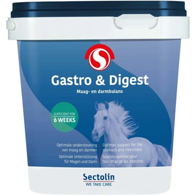 Sectolin Paardensupplement Gastro&DigestSectolin Gastro&Digest is een aanvullend diervoeder dat de maag en darmen van jouw paard optimaal ondersteunt. Dit supplement helpt het behoud van een normale zuurgraad in de maag en beschermt de maagwand. Dankzij een unieke combinatie van componenten wordt maagzuur stap voor stap gebufferd en teruggebracht naar de gewenste waarde. De toevoeging van levende gisten en prebiotica bevordert een gezonde darmflora, stabiliseert de pH-waarde en ondersteunt de opname van voedingsstoffen. Speciaal geselecteerde kruiden en omega-3 vetzuren dragen bij aan een gezonde spijsvertering en algehele vitaliteit. Door de kleine brokjes is dit product eenvoudig te voeren en goed opneembaar. Gastro&Digest is graanvrij, glutenvrij en vrij van toegevoegde suikers. * Ondersteunt maag en darmen in balans * Helpt bij behoud van een normale maagzuurgraad * Met pre- en probiotica voor een gezonde darmflora (Plein.nl)
