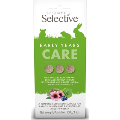 Supreme Early Years CareSupreme Early Years Care ondersteunt jonge dieren in hun groei en ontwikkeling. De uitgebalanceerde formule bevat essentiële voedingsstoffen voor sterke botten, een gezond gebit en een goed werkend immuunsysteem. Ideaal voor pups, kittens en jonge konijnen in de eerste levensfase. Geschikt voor dagelijks gebruik en eenvoudig te mengen met het voer. * Ondersteunt groei en ontwikkeling * Bevordert sterke botten engezond gebit * Versterkt het immuunsysteem * Geschikt voor jonge dieren (Petgamma.com)