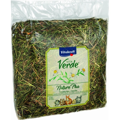 Vitakraft Vita Verde Hooi KamilleVoor elk knaagdier en konijn is het van belang dat deze op elk moment van de dag kan beschikken over hooi. Het heeft een hoog ruw celstofgehalte welke bijdraagt aan het welzijn van het dier. Het hoge ruwe celstofgehalte werkt spijsverteringsbevorderend en is goed voor de tandslijtage van het knaagdier en konijn. VitaVerde hooi met kamille is verrijkt met lekkere kamille welke bekend staat om zijn rustgevende werking op de maag en darmen en bevorderd daarmee het welzijn.Het hooi is een natuur product en zon gedroogd zodat de natuurlijke vitamines en mineralen zoveel mogelijk intact blijven. * Voor alle knaagdieren en konijnen * 100% natuurlijk * Verrijkt met kamille * Met natuurlijke vitamines en mineralen * Hoog ruwe celstofgehalte (Plein.nl)